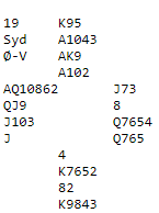 De var i 5 hjerter som ble doblet, og de redoblet! Det var bare en spartaper og en taper i trumf, men kløveren måtte løses uten taper. Jeg har ikke fått det bekreftet, men kanskje kom kløver knekt i utspill og spillefører kunne løse fargen ved å spille esset og senere ta finesse over østs dame fjerde. Det vinnes elleve stikk på samme måte om det ikke kommer kløver ut, og det er langt i fra umulig å få til det siden vest underveis nok hadde vist lang spar, og dessuten raskt ble avslørt med tre trumf, så makkeren (øst) er storfavoritt til å ha kløverlengde.