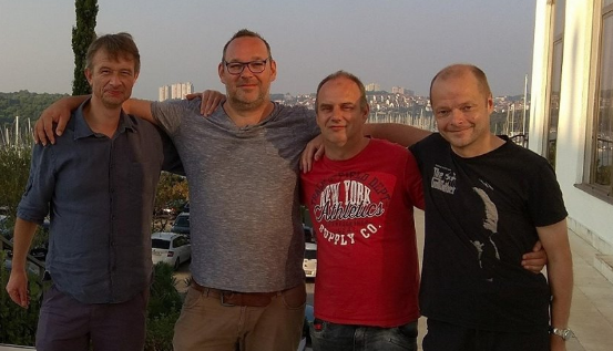 John Helge (tv) og Jon flankerer de nederlandske lagkameratene Yke Smith og Mark Thiele
