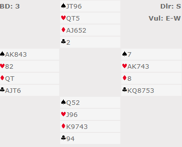 Ved en rekke bord satte de så i gang med kontrollmeldinger (cuebids), og etter litt av det sa vest 4 spar, sparkontroll. Det er det som ofte blir feil. Nå kan ikke øst på en trygg måte få sjekket essene, for sier han 4 grand så risikerer han at makkeren sier 5 ruter – ett Key Card, og da mangler det to ess, og pga. av svaret 5 ruter er vi allerede høyere enn trumffargen på fem-trinnet!
