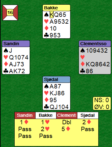I dette spillet ble de enklere med 1 ruteråpning som svensken valgte, mens nordmannen på vests plass sa 1 kløver. Slik så hele spillet ut: