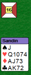 Da svenske Sandin som du ser åpnet med 1 ruter viste også øst frem sparfargen etter 1 hjerter fra nord, men i neste melderunde meldte øst 5 ruter i trygg forvissning om en fet trumftilpasning, og i ruterkontrakt er øst sin hånd veldig god. De vant tolv stikk, 11 IMP til Sverige.