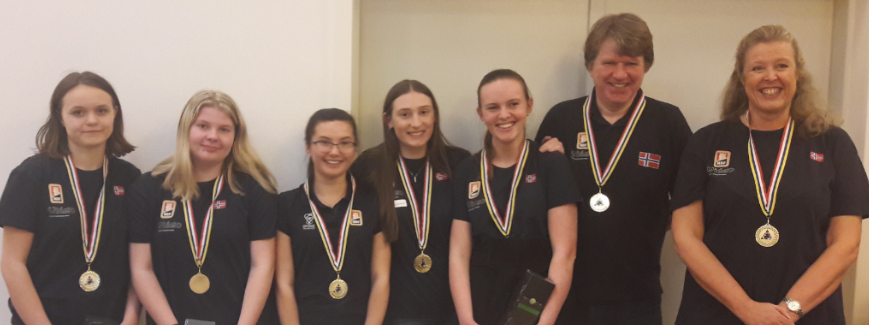 Gull i U26W: fra venstre Kaja Brekke, Ida Marie Øberg, Thea Lucia Indrebø, Katarina Ekren, Agnethe H. Kjensli, Sven-Olai Høyland og Elisabeth Græsholt Sjødal.