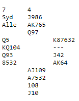 Dette er en glimrende slem spilt av nord. Kun en svært uheldig sits i trumf med alle tre trumfene bak nords hjerter beter 6 hjerter, eller at det sitter helt vilt og de får en stjeling i en farge. Spilleføringen var en formalitet, +980 til Norge.