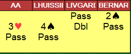 Aa-Livgård å spille motspill mot 4 spar i stedet for å si 5 hjerter, riktig beslutning om man ser alle kortene - en sjanse for et lite pluss-spill.