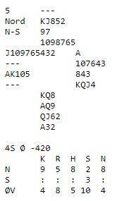 Uansett, Norge meldte altså 6 spar som stod mens det ved de andre bordene ble stoppet i utgang.