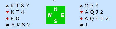 Det er selvsagt ikke lett å melde med kun 4-3 tilpasning, men siden de i den fargen har tieren er det en glimrende slem. En ruter kan stjeles med hjerter 10 for sikkerhets skyld, og det blir ofte greit å vinne tolv stikk i hjerterkontrakt. Sjødal-Sjødal var i 5 ruter, en nokså sikker utgang. Ved det andre bordet endte imidlertid Ø/V i 6 NT. Vunnet eller tapt spill?