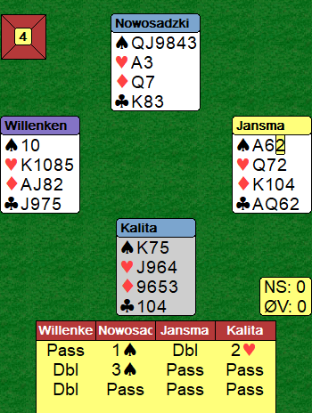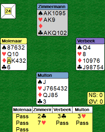 Merk at også Verbeek gikk innpå med 3 kløver med øst sine kort!