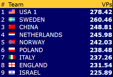 Norge - USA 1 19,25 - 0,75 (IMP-score: 54- 3)