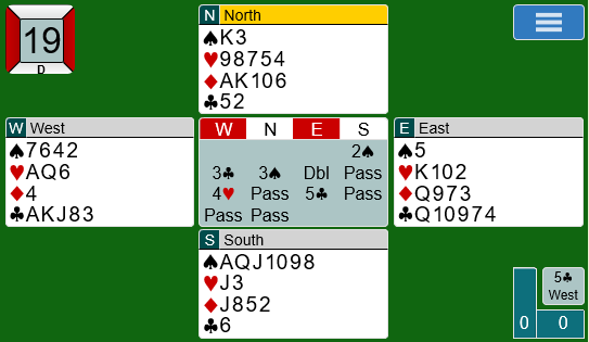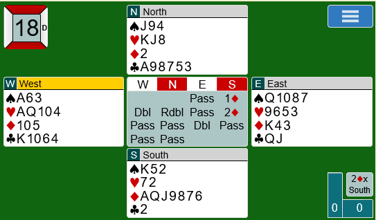 Sagt på en annen måte er det slik at dobbelfinessen i hjerter har langt større odds selv uten indikasjoner, men meldingende som har kommet imot bare forsterker inntrykket av hva man bør spille på.
