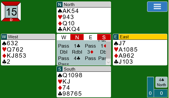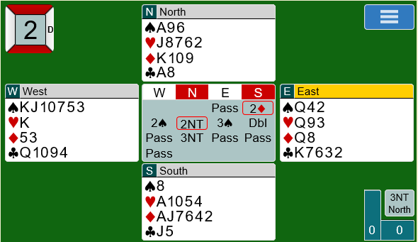 Ved det andre bordet gjenmeldte Rodwell 3 ruter i stedet for 3 hjerter: