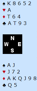 Med denne ruterkombinasjonen kan det ofte være riktig å spille ruter ess først, spesielt hvis man behøver kun tre ruterstikk. I dette tilfellet vet imidlertid ikke spillefører hvor mange ruterstikk han behøver, og det kan være fire ruterstikk å hente av og til hvis du spiller damen; hvis nord har K-10 dobbel, eller syd har tieren dobbel. Dessuten er det et poeng at du ikke ønsker å slippe inn nord siden kløverfargen er skummel om esset sitter bak kongen. Så du spiller ruter dame i andre stikk.