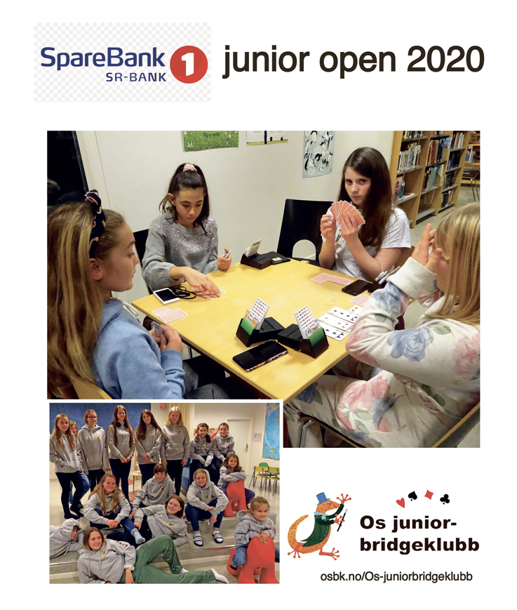 Til helga arrangerer Os juniorbridgeklubb si første store turnering. SR-bank er hovudsponsor for turneringa, og saman med ei rekke mindre sponsorar gjer det ei turnering med ei flott premiering. Sjølve turneringa startar laurdag kl 10 og vi reknar med premieutdeling rundt klokka 18. Det kjem tilreisande frå både nord og sør, så det blir bridgeaktivitetar på Nore Neset skule gjennom heile helga. Dei som ynskjer må sjølvsagt gjerne stikka innom og sjå ein del av noregs beste juniorspelarar i aksjon.