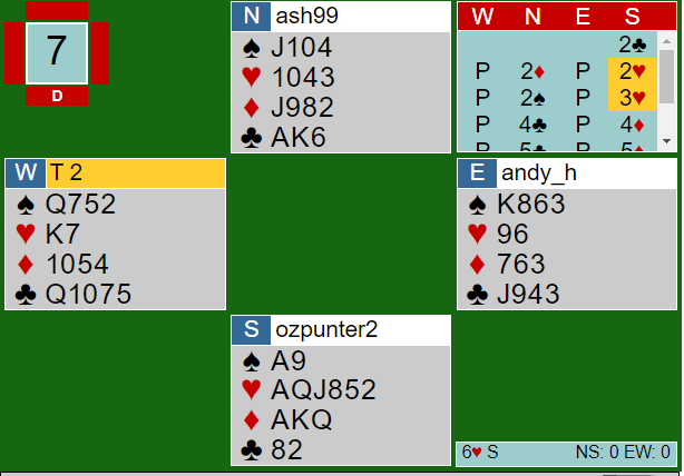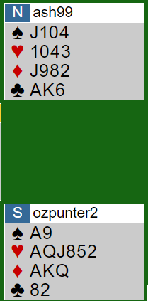Etter dette havnet N/S i 6 hjerter.