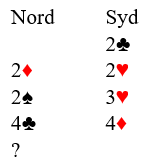 I dette tilfellet viste åpneren hjerterfargen, og de fant hjertertilpasningen. Da syd på et tidspunkt meldte 4 hjerter følte ikke nord at han hadde noe særlig ekstra og passet.