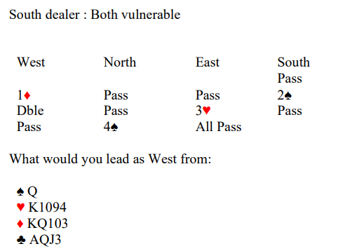 Syd åpnet altså med 2 spar med det samme, og Tor doblet opplysende. Etter nords 4 spar som godt kan være en ren sperremelding doblet nordmannen igjen, og ingen hadde noe å tilføye. Før utspillet gjorde imidlertid Tor noen fornuftige betraktninger: