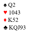 Dette spillet er fra mandagens sommerbridge. Du sitter syd med disse korta: