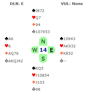 Østs 2 ruter viste kløverstøtte og bra kort, og vests 3 kløver minimum for innmeldingen 2 kløver.