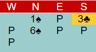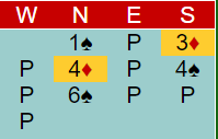 Prøv deg selv som utspiller (øst) mot nords 6 spar.