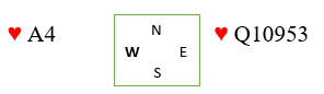 La oss si du etter esset og liten mot øst legger tieren og nord har fire hjerter. Hvis tieren da drar kongen så det slik ut fra start: