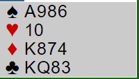 Det er en ok lilleslem i ruter, men nokså hardmeldt. Å stoppe i utgang er greit nok, men om de kommer inn i en sleminvitt-sekvens har begge spillerne fine verdier og det kan fort ende i slem. Merk at makkerparet mangler ingen Key-Cards, og bare trumfdamen mangler av de "viktige" nøkkelkortene.