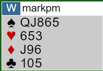 I lagturneringen OCBL III på BBO forleden kom Irland seg videre til sluttspillet, og de vant kvartfinalen før de røk ut i semien. Mot profflaget DONNER i kvart'en satt iren Mark Moran vest med dette i første hånd, gunstig sone:
