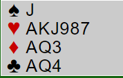 Han åpnet også med 1 ruter, men makkeren hans var mer optimistisk enn meg og svarte 1 hjerter. Jeg tror ikke det er vinnende i lengden fem "softe" poeng og 3433 fordeling. Hvis makker er sterk vil han etter 1-over-1 svaret alt for ofte melde for hardt og en havner på tre- eller firetrinnet med bet.