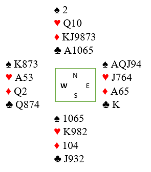 Utspillet ble stukket med hjerter ess. Nick tok to runder trumf fra bordet (øst) og oppdaget 3-1 sitsen. Det gjorde det vanskelig å få til en eliminasjon og et innspill som kunne se ut som eneste måte å unngå to hjertertapere, en taper i ruter og kløver ess som betyr en bet.