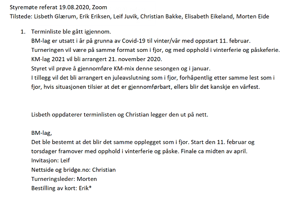 I tillegg er referatet fra styremøte 19.08 lagt ut i arkivet.