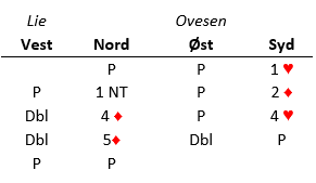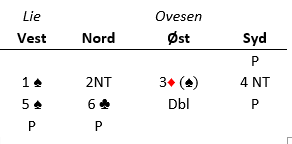 Der startet det lavt og behagelig, og Lie (vest) ble advart av syds 1 hjerteråpning. Men da N/S begynte å bevege seg farlig høyt våknet Lie og begynte å doble dem.