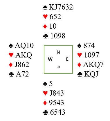 Idet øst altså doblet ville vest spille slem og hoppet rett i 6NT. Nå var situasjonen en helt annen for spillefører. Informasjonen 2 spar-meldingen ga gjorde at det var nesten venstrehåndsarbeid å vinne tolv stikk etter kløver 10 i utspill.
