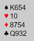 Denne gangen er vi unnskyldt for ikke å spille ut makker farge. Men ingenting er fristende av de andre tre fargene. Hvis ruter var umeldt farge ville ruter knekt pekt seg ut, men med lang ruterfarge til venstre for oss kan det bli en grusom favør (og som du snart skal se, ruter knekt er en favør her).