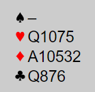 Nord har ikke så fantastiske kort, men sparen bør som nevnt være under kontroll. Siden syd ikke har en eneste ruterhonnør må hun ha meget sterke kort i kløver og hjerter. Det kan godt være nedlegg i 6 ruter, kanskje står det 7 ruter!