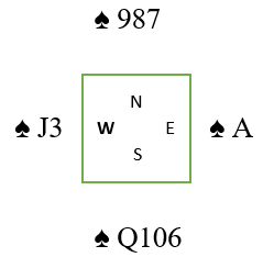 Idet øst er inne på sin første trumfhonnør kan han se at om vest har ruterstikk kommer det til dem uansett på et tidspunkt. Hvis de har ett hjerterstikk nå så har de det nå eller senere, men om de skal kunne bete 4 spar med kun ett stikk i hjerter og trolig ingen ruterstikk må de få mer enn to trumfstikk.