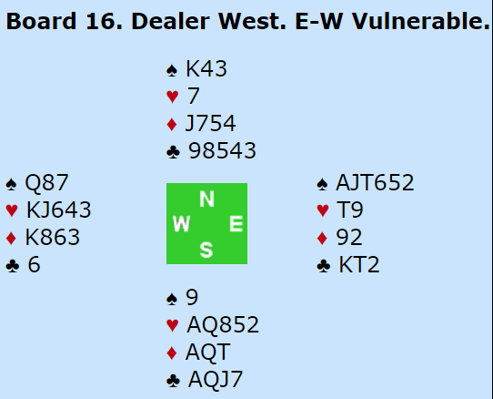 Her hadde dog Frydenberg et problem slik meldingene gikk. Han kunne ha doblet en gang til etter 2 spar - 3 spar, men da føler han at det er fare for ikke å finne 5-3 tilpasning i hjerter. Ved det andre bordet doblet syd en gang til etter samme start, nord sa 4 kløver og der spilte de.