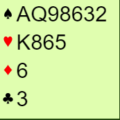 2 spar har kanskje noe for seg, for hånden er litt vel sterk spillemessig for 3 spar hvis det er definert som sperremelding. Først of fremst kan 3 spar bli galt om makker har brukbare verdier mot nords hånd, fordi han ikke helt kan se for seg en så spillesterk hånd. Men det er tross alt i ugunstig sone, så...