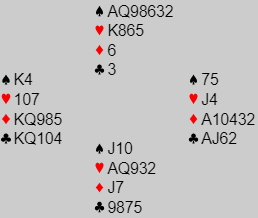 Som du kan se har N/S en formidabel dobbeltilpasning i majorfargene og kan vinne elleve stikk i både spar- og hjerterkontakt.