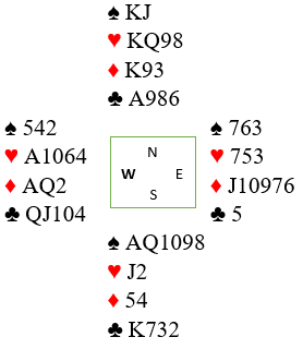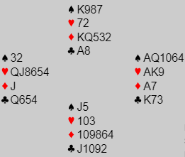 I en amerikansk lagturnering så kortene slik ut (da spillet forekom var det Ø/V som satt med kortene som tilsa en potensiell slem):