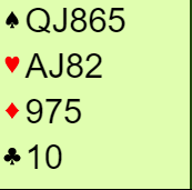 N/S har en slags stamp, men det bør helst være i sparkontrakt hvor det kan bli syv stikk. I en eventuell 4 hjerter doblet blir det et skikkelig blodbad. Ø/V kan foruten toppstikkene i spar (1), ruter (3) og kløver (1) få tre hjerterstjelinger hos vest i tillegg til ett trumfstikk hos øst. Det blir i så fall seks doblede, - 1400! Det skjer for eksempel slik: Kløver ess ut, skift til spar til esset og spar til stjeling. Så ruter knekt som øst stikker med kongen og gir nok en sparstjeling. Så følger ruter til tieren, ruter ess, og etter det enda en spar. Nord er fri for spar, men spillefører ikke nekte vest å trumfe med tieren så han får for alle trumfene sine. I tillegg har altså øst ett stikk i trumf.