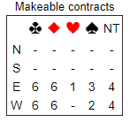 Men her er computeranalysen på resultatsiden, og der står det at 6 ruter kan vinnes uansett utspill og motspill: