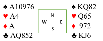 Å spørre med 4NT – Key Card Blackwood vil ikke hjelpe i det hele tatt her, for han har helt sikkert ikke tre nøkkelkort (Key Cards, essene og spar konge) siden han kun løftet til 4 spar. Han har neppe to heller, men har han to eller ett nøkkelkort blir det gjetting. Det kan være spar konge han har, men kan like gjerne være at han har ett ess i en minorfarge.