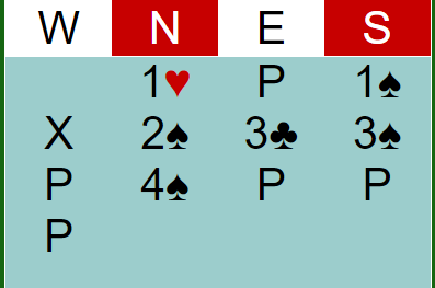 Våre lagkamerater som skulle spille motspill mot 4S har imidlertid en intellligent avtale i situasjoner hvor det skiftes til en farge med A-J-x på bordet. Det kan nemlig være et dilemma for han bak bordet hvis han har K-x-x-(x) hvis spillefører legger liten. Skal han legge liten (riktig om makkeren har Q-10-9), eller ta stikket for kongen. Spørsmålet blir altså om han som skiftet til tieren har Q-10-9 eller bare 10-9-x. Derfor spiller de tieren hvis de også har damen (eller kongen), og nieren hvis de ikke har høyere honnør. Altså kun mot den kombinasjonen hos blindemann.