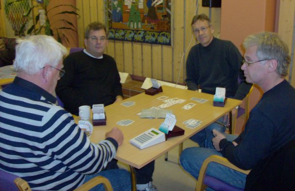 Ogndal BK leder både 3. og 4. divisjon som ble spilt på Steinkjer i helga. Leka BK leder 4. divisjon i Ytre Namdal. Det er jevnt i toppen i 3. divisjon etter den første helga, og kampen vil nok stå mellom de tre første lagene. På tetlaget spiller brødrene Kvaran, Reidar Bruen Olsen og Lorentz B. Nitter. På andreplass og like bak ligger et lag fra Stjørdal, tett fulgt av Overhalla med Eva Falstad Flått på laget som var eneste dame i denne avdelingen. Siste helga møtes for øvrig Overhalla og Ogndal, og her vil nok opprykket bli avgjort tenker jeg. Lederlaget i 3. divisjon. I 4. divisjon avd. 11 er det to lag som har fått et lite forsprang og i tet er Harald Saur, Annar Dahlen, Bjarne Nyberg og Ivar Stene. På andreplass følger Anders Svare, Oddbjørn Dyrkorn, Mathias Mediå og Arne Mathias Haukø. Også disse to lagene møtes siste helg og opprykket vil nok bli avgjort her. Lederlaget i 4. divisjon. 4. divisjon avd. 10 som ble spilt på Rørvik kom Leka BK best i gang med Odd Arne Ulriksen, Jacob Sandvik, Øystein Leknes, Anders M. Larsen og Carl Emil Brasø på laget. Like bak lusker turneringsleder og altmuligmann Louis Øvereng, som nok en gang står for arrangementet der ute i havgapet. Ragnar Davidsen og Robert Althe holdt orden på regler og tall på en utmerket måte og med resultatservice på internett, som jeg tror er første gang vi har hatt på våre kanter. Ellers har vi fått tilbakemelding på at spillelokalene var i trangeste laget, noe vi skal prøve å bedre til neste helg i februar. Bilder fra SM her Resultater 3. div. avd. D her Resultater 4. div. avd. 11 her Resultater 4. div. avd. 10 her