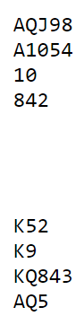 Om det hadde vært mulig å melde lilleslem i spar med syd som spillefører ville det vært en bedre slem enn med nord som spillefører, for om syd spiller kontakten er kløverkombinasjonen beskyttet i utspillet. Hvis nord er spillefører og det kommer kløver i utspill må den finessen gå (50%), og det må litt mer til om det går bra også. Hvis det ikke kommer kløver ut fra øst er det ganske gode sjanser selv om vest har kløver konge, for ruter ess kan jo sitte foran slik at K-Q gir to avkast.