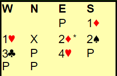 Heimdal åpnet i 2. hånd med 3 ruter, jeg doblet opplysende og etter pass fra Frønningen svarte Jan P. merkelig nok bare 3 spar. Men da Øst ikke passet men fortsatte med 4 ruter tok jeg sjansen på at mine gode langfarger (Jan har 4+ spar og håpet var en viss styrke i fargen også) slugget jeg 4 NT spørsmål etter ess og siden makker hadde ett kom vi «på sjanse» i 6 spar. Og det var ingen prøve med så gode kort nord hadde, 3 spar lover 0+!