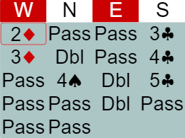 Noe av det som gjør posisjonen intrikat er at det er veldig uvisst hvilke kort øst kan ha. Men det at øst passer 2 ruter tyder i alle fall på at han/hun har veldig dårlig tilpasning i (minst) en av majorfargene. Det kan videre innebære at øst og vest har hver sin majorfarge, og dermed kan det være at sitsen er svært sur med tanke på å spille majorkontrakt nord-syd. Med andre ord kan vi si at det ligger en advarsel i meldingsforløpet om at sitsen ikke er spesielt hyggelig for nord-syd.