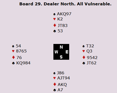 Også i spill 29 fikk nord-syd utdelt sterke kort. Kan du se for deg hvordan du ville meldt disse kortene med din favorittmakker?