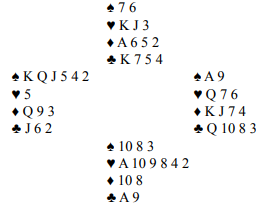 Vest spiller ut spar konge. Øst stikker over med esset og spiller mer spar til vests dame før han fortsetter med en tredje runde spar.