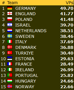 I tillegg til håpet om å kjempe om medalje er det selvsagt uhyre viktig å bli på topp-8 i EM da det gir plass i neste års VM. Fra Norge sin poengsum ned til 9.plassen er det i øyeblikket ca. 17 VP.