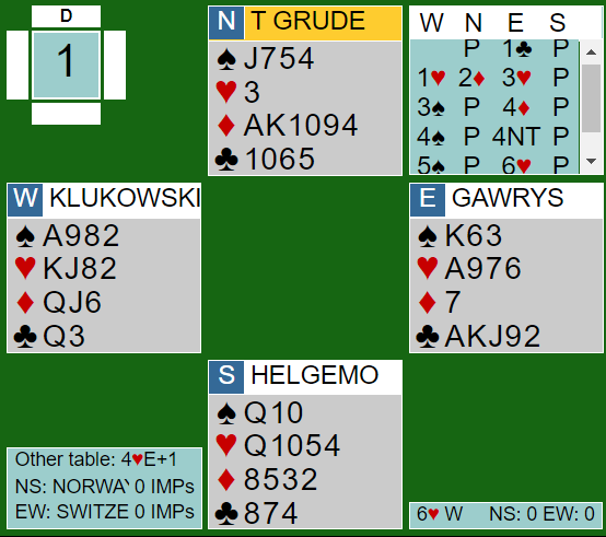 Gawrys-Klukowski sto på til 6 hjerter med dette, steinhardt meldt!!