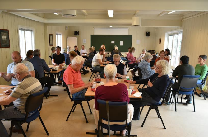 På lørdag var det stor festmiddag med god mat og drikke, taler og underholdning. Meget vellykket. Men det ble spilt bridge også før og etter selve festen, fra fredag til søndag. Det var både singel-, par- og lagturnering. Mange av medlemmene er utrolig glade i å spille bridge, så det var flere som spilte utenom turneringene også. I pausene og før og etter de offisielle turneringen satt de og spilte.